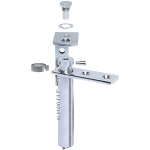 Bottom plate drilled and countersunk and pivot flange drilled for No. 10 (5.0 mm) screws.