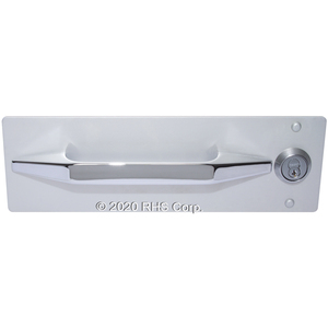 Mounts with 3 bolts on 4" thick door, 30" wide or greater. Latch and handle through-bolt with hidden hardware.