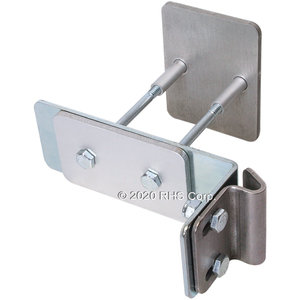 Stainless steel strike through-bolts with concealed bolt holes for simple, secure installation. Enables No. 57 latch to replace most standard walk-in latches without additional panel reinforcement. Plate covers unused screw holes. Use with No. 57-04 or No. 57-08 locking system flush door or door with offset up to 1-1/4" (31.6mm)