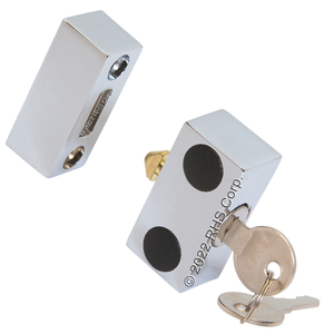 SECURITY LOCK FOR USE ON REACH-IN DOORS. LOCK MOUNTS ON DOOR EDGE USING TWO SHEET METAL SCREWS.