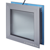 TRIPLE PANE GLASS WITH ARGON INSULATION BETWEEN PANES. FRAME IS BRUSHED ALUMINUM.