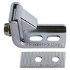 ZINC PLATED STEEL. NEW DESIGN CATCH IS 1" FROM CENTER LINE MOUNTING HOLES AND 1 3/8" IN HEIGHT. THE NEW STRIKE IS ONLY 11/16" WIDE AND HAS 2 MOUNTING HOLES THAT ARE OFFSET.